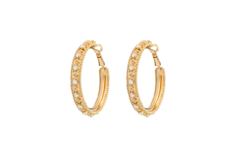 Metal & Prestige Crystal Hoop Earrings - Gold Plated