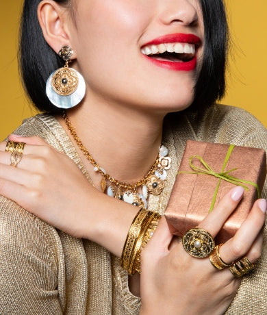 These small gold-plated hoop earrings are adorned with sparkling Prestige crystals. Made of gold-plated pearl metal, this feminine pair of earrings has a baroque style that is both chic and feminine. Day or evening, these gold-plated hoop earrings will be a favourite whenever youre going out.