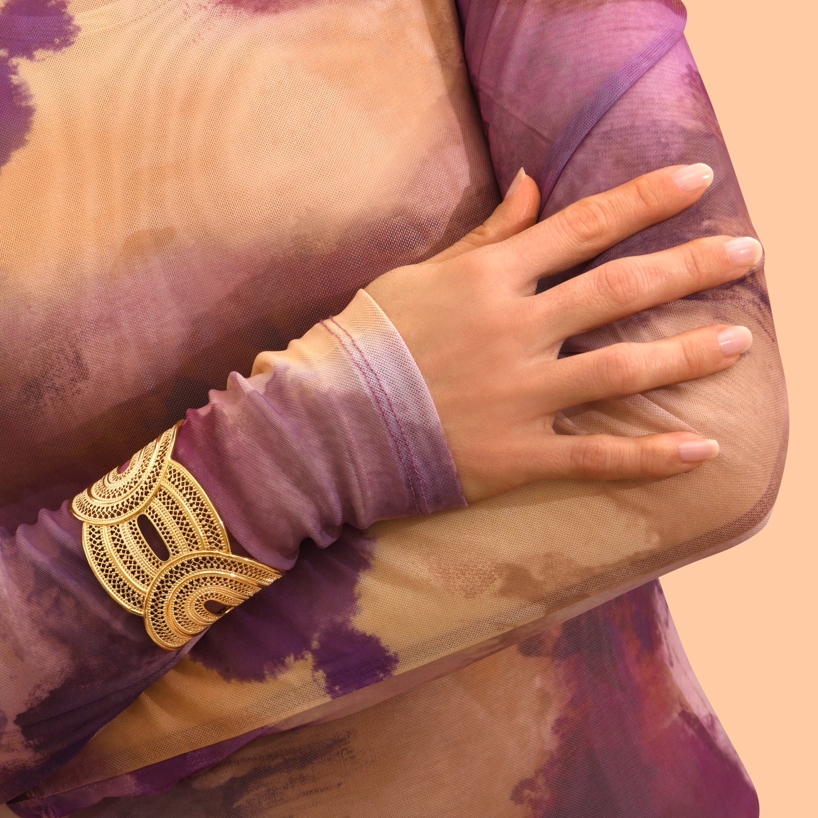 Noor Wide Filigree Cuff Bracelet in GoldNOO27/O