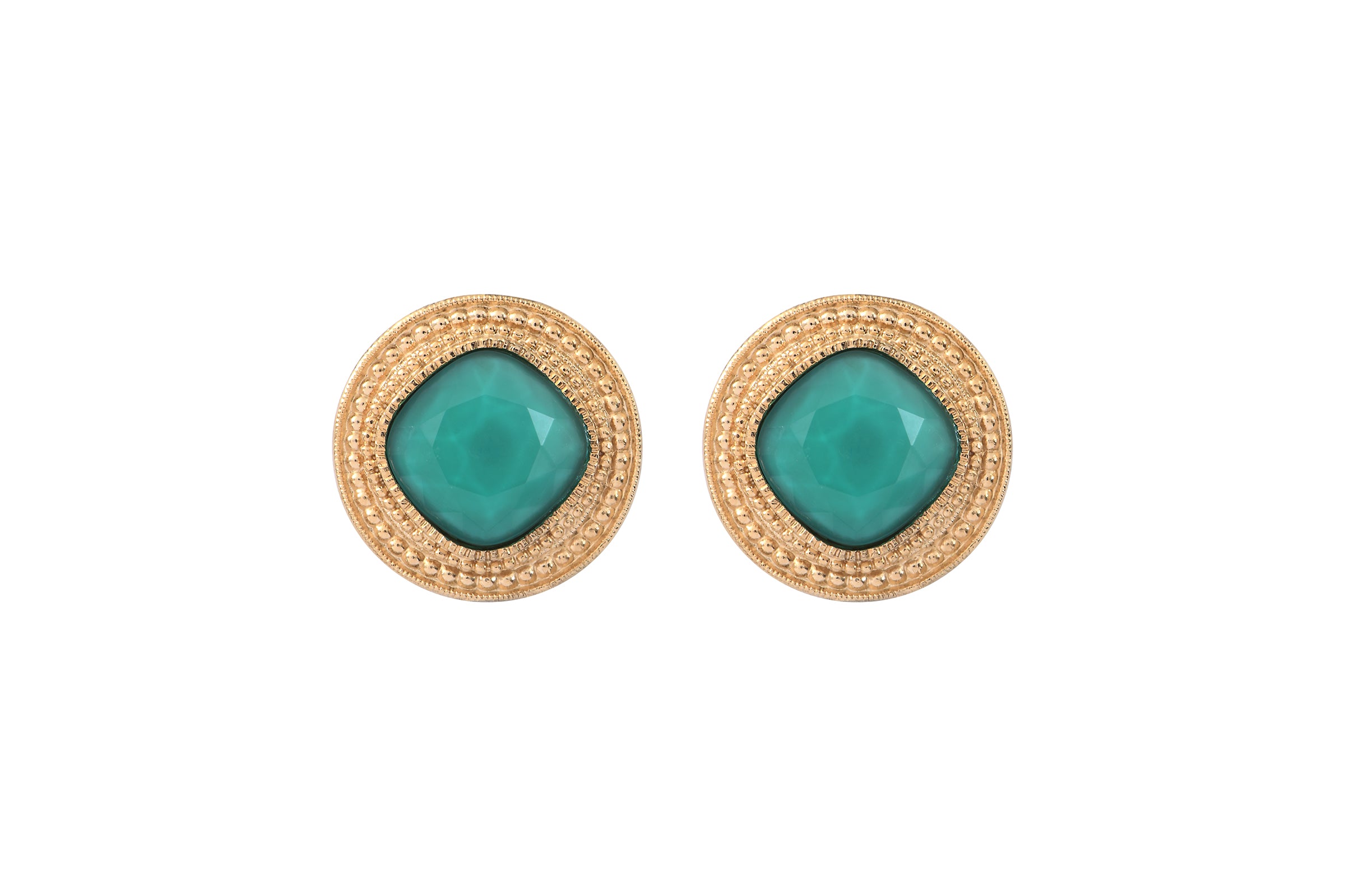 Feminine and easy to wear whatever the occasion, these gold-plated and turquoise earrings will be firm favourites. Adorned with a turquoise glass paste cabochon for an ethnic chic touch, these Louise earrings can be teamed up with a matching ring for a complete, on-trend look. As if beaded, the fine gold-plated metal highlights the elegance of this Satellite creation.