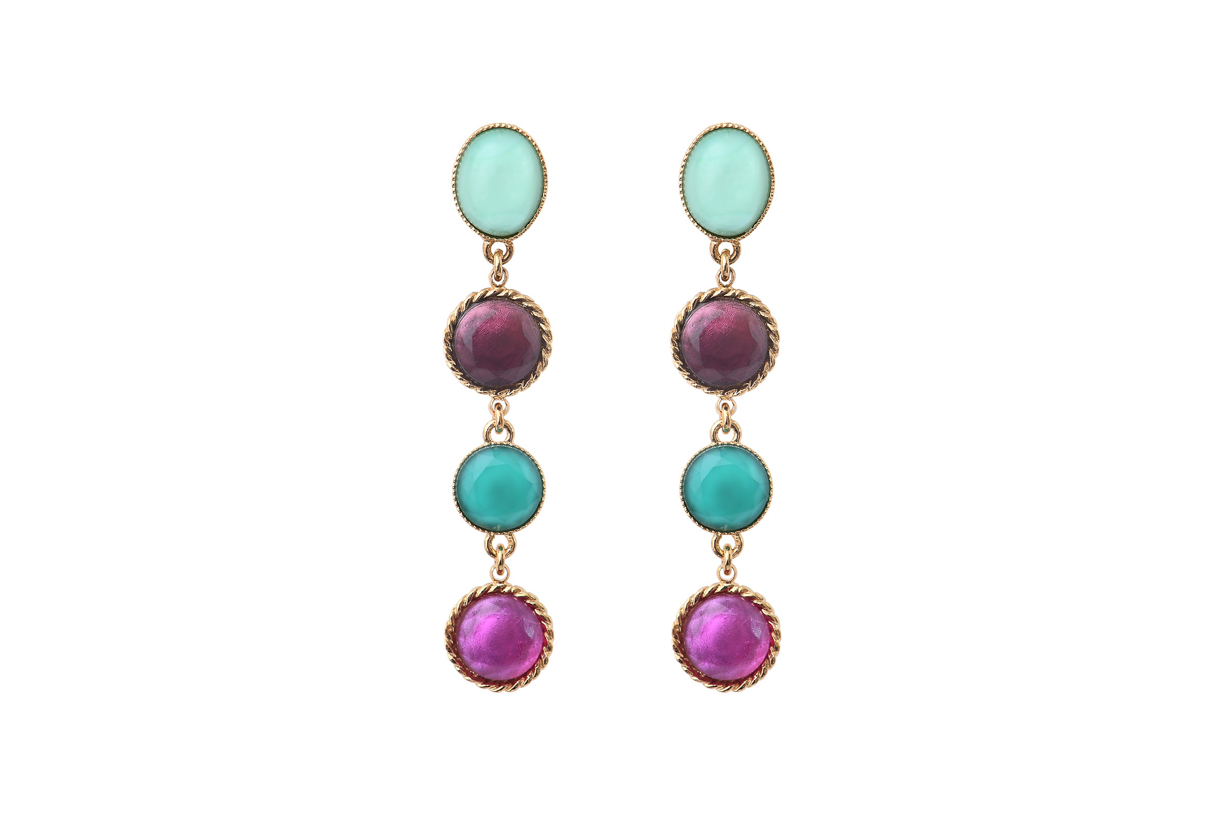 Succumb to the inimitable style of this beautiful coloured jewellery composed of four blue and pink glass paste cabochons. These stud earrings will attract attention and have you holding your head high with elegance and originality. Oozing personality, this colourful fine gold-plated metal is the guarantee of on-trend, feminine appeal.
