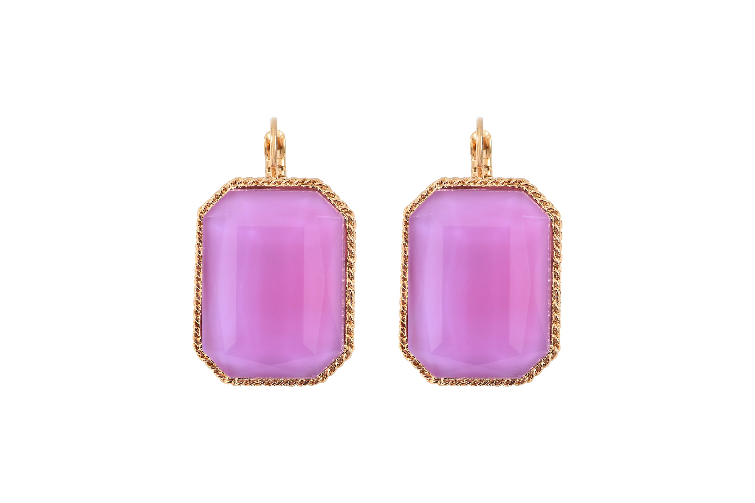 Wear these Louise earrings for feminine baroque style with a dash of modernity. Adorned with a large mauve glass paste cabochon in an emerald-cut style, these fine gold-plated earrings proclaim their character whilst revealing your power of seduction. Team these feminine earrings up with our Louise cabochon ring for a complete, inimitable look.