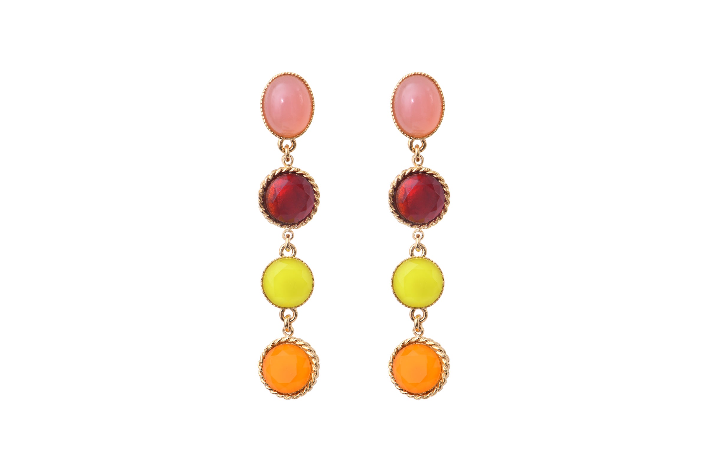 It’s difficult to resist the power of attraction of this Louise jewellery which is the perfect embodiment of summer-time "joie de vivre". Composed of four glass paste cabochons in sunny colours, these fine gold-plated metal stud earrings will highlight your radiant, highly sophisticated femininity. Dive into summer by succumbing to the appeal of this jewellery!