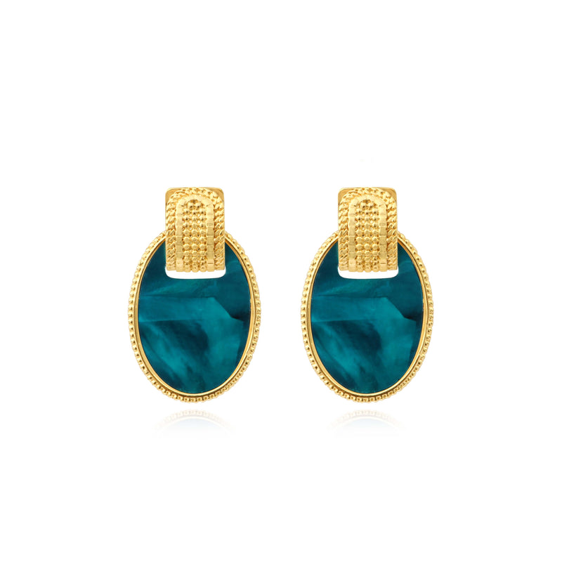 Ashanti Stud Earrings In Oval Mother-Of-Pearl & Metal – Green Turquoise
