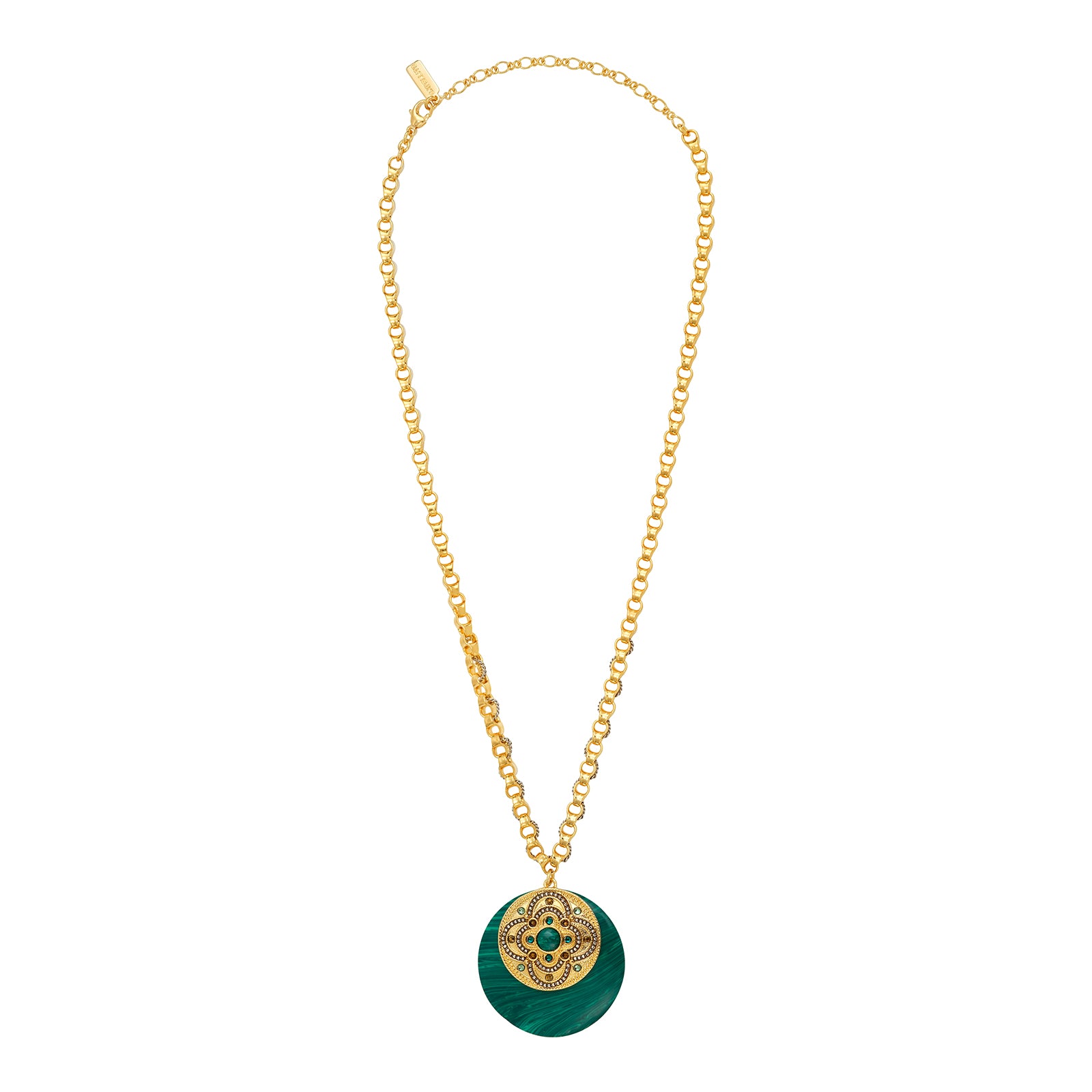 Positano Malachite-effect Stone Medallion & Jewel Link Chain Necklace in Green