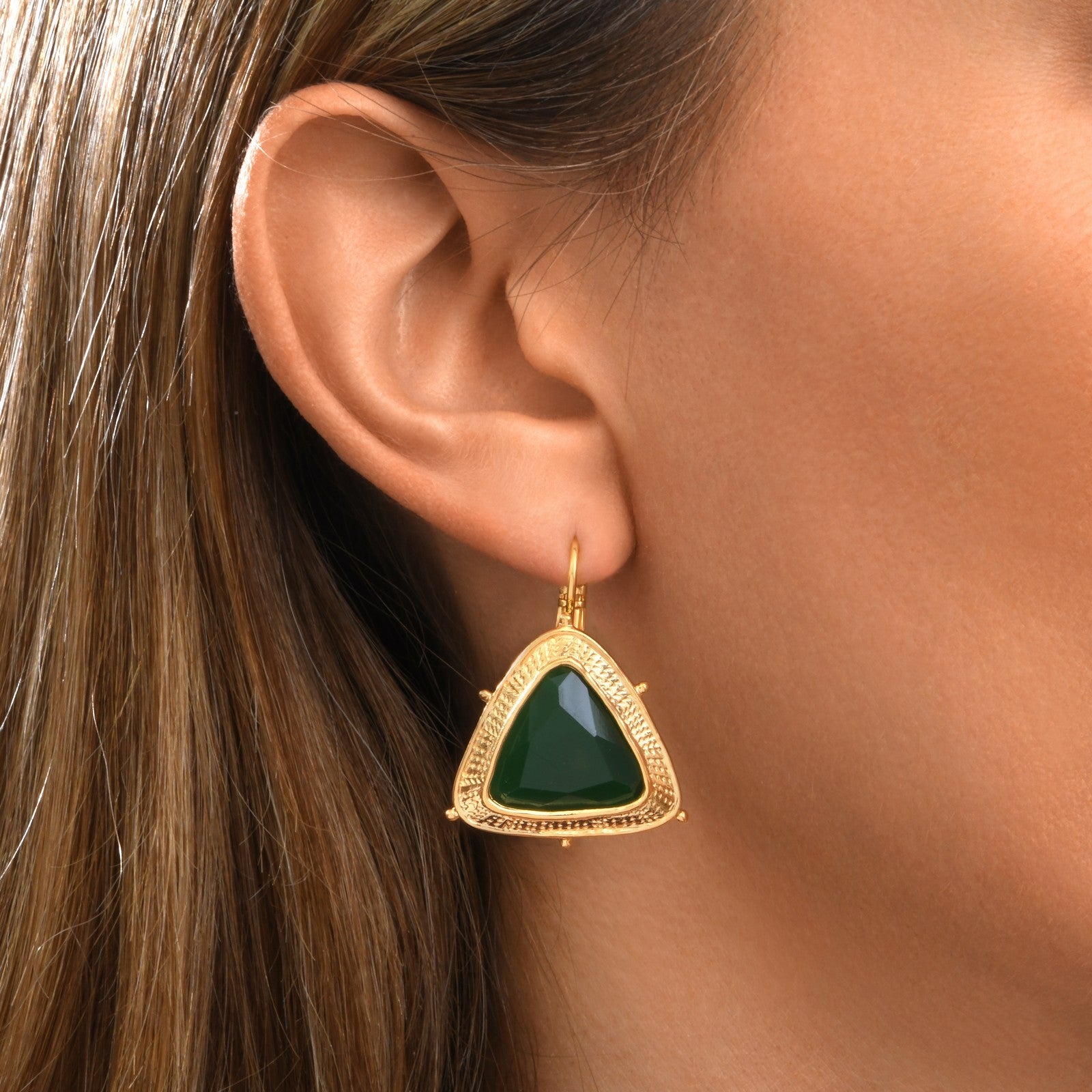 Bysance Sleeper Earrings In Gold-Tone Metal With Triangular Cabochon – Green