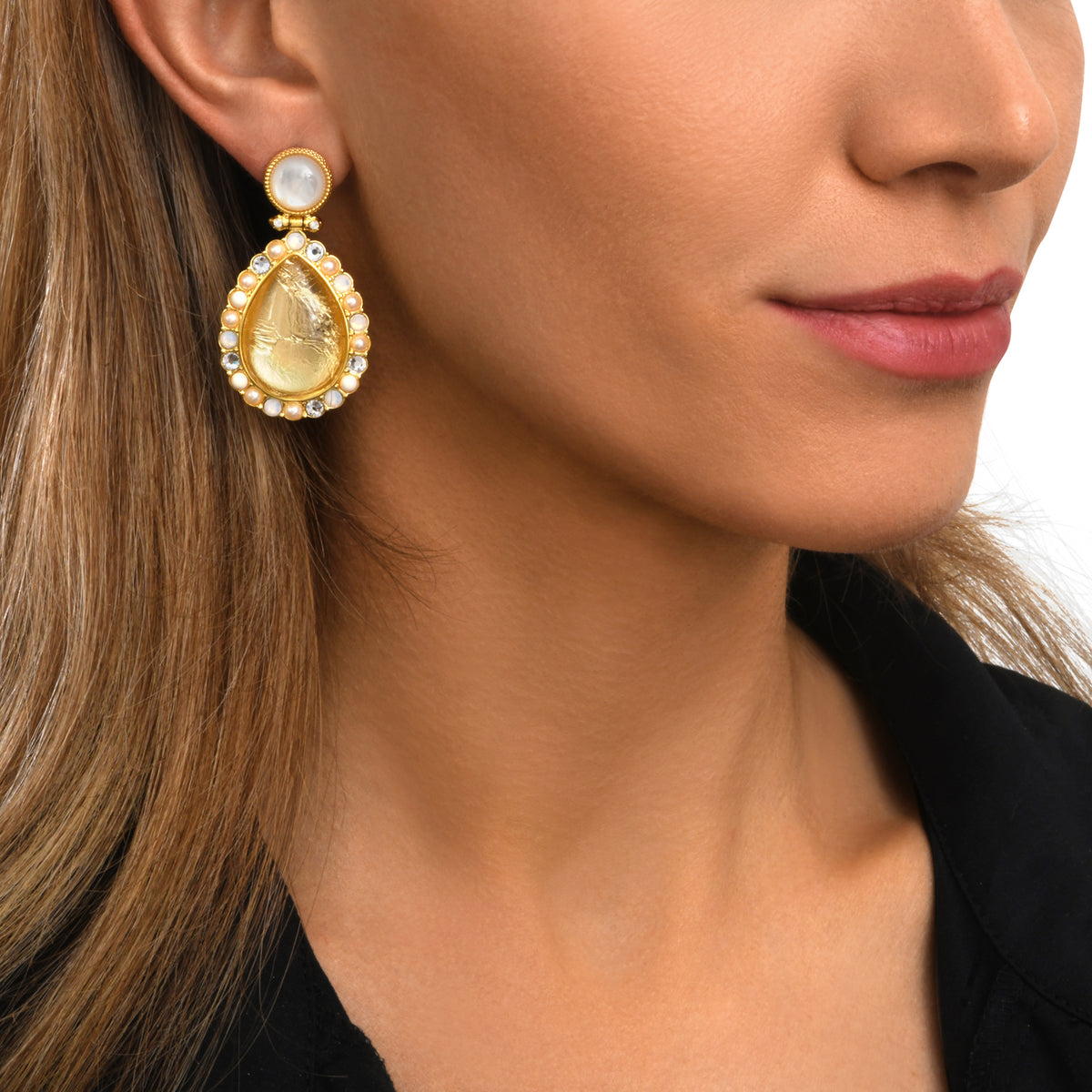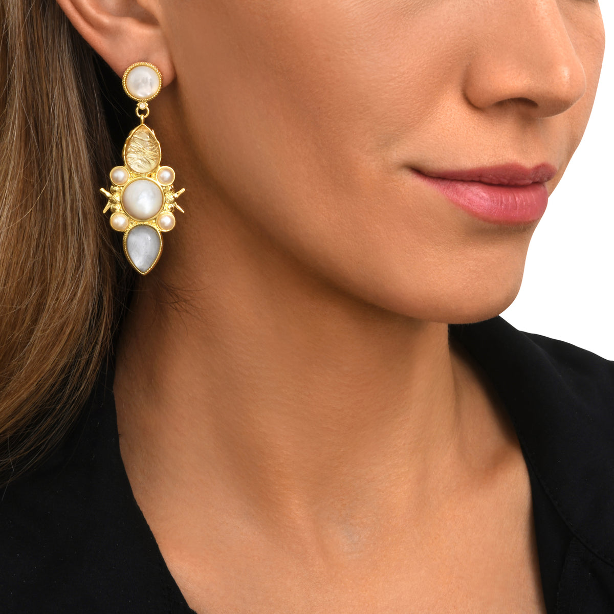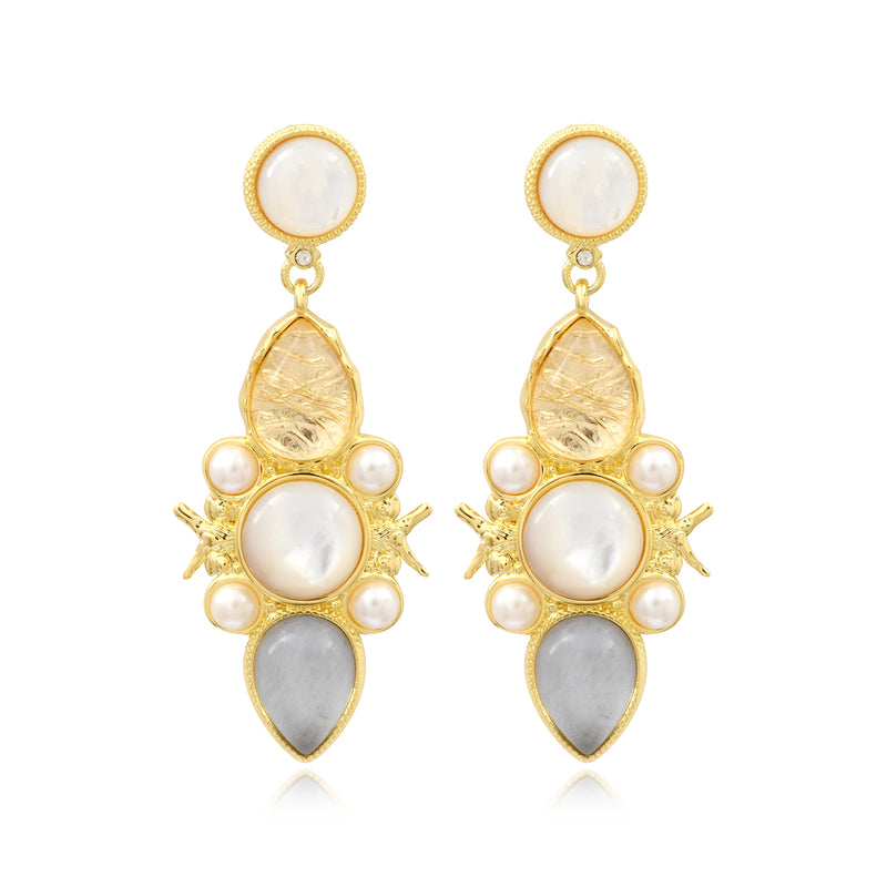 Océane Dangling Stud Earrings In Mother-Of-Pearl & Cabochons – White
