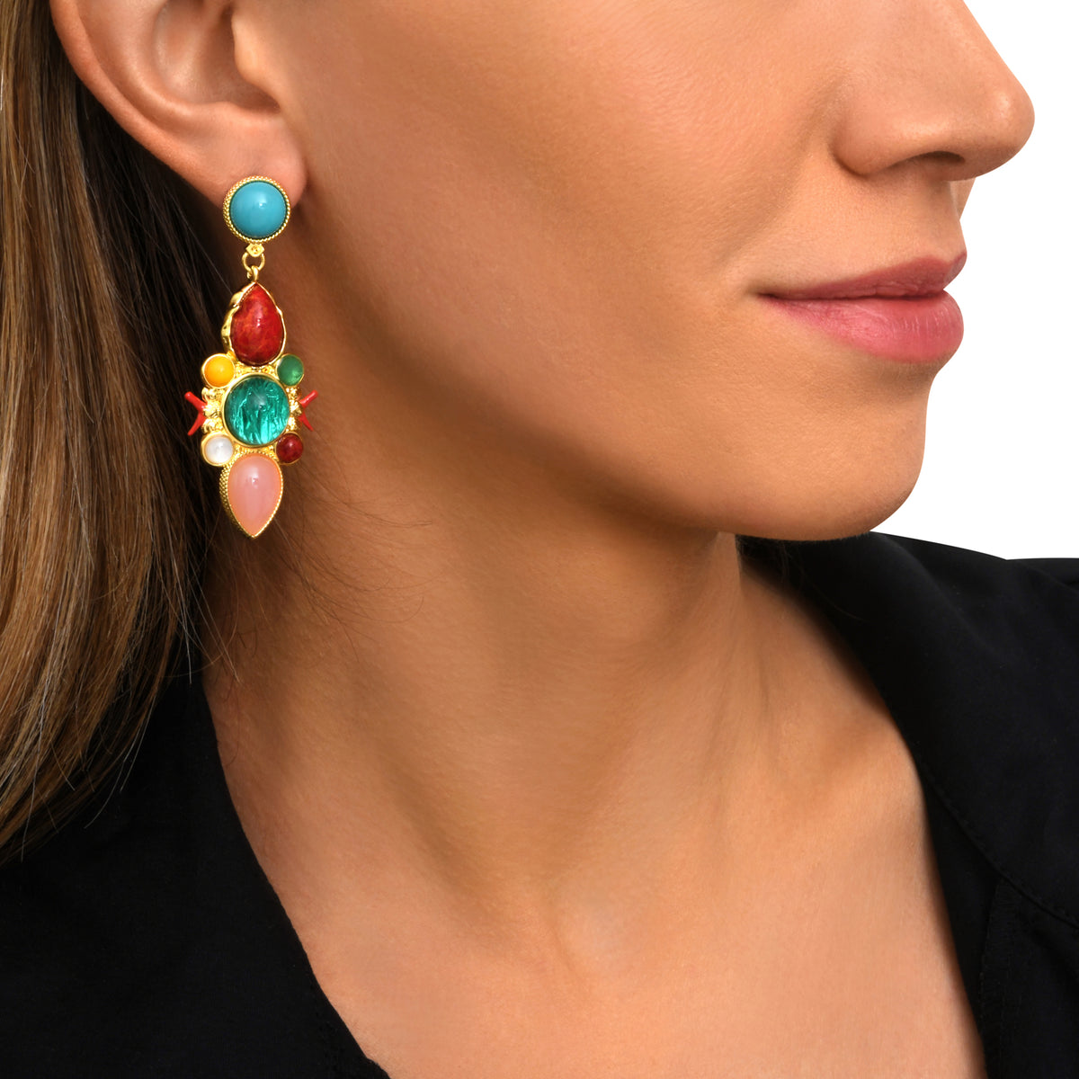 Océane Dangling Stud Earrings In Turquoise & Cabochons – Multi