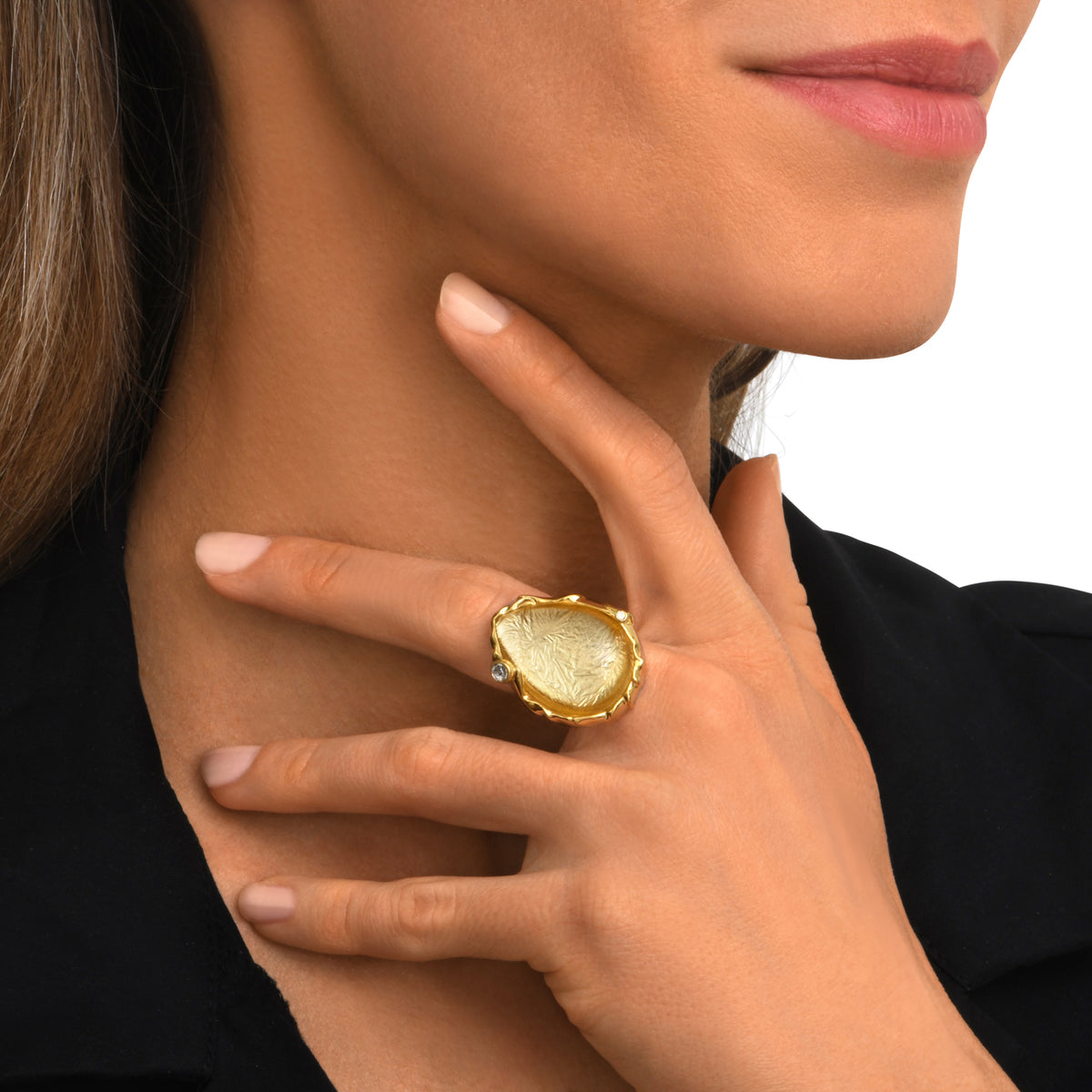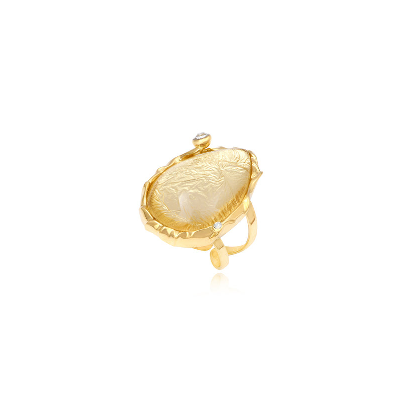 Océane Adjustable Gold-Tone Statement Ring Size S, Transparent Central Motif With Golden Reflections – White