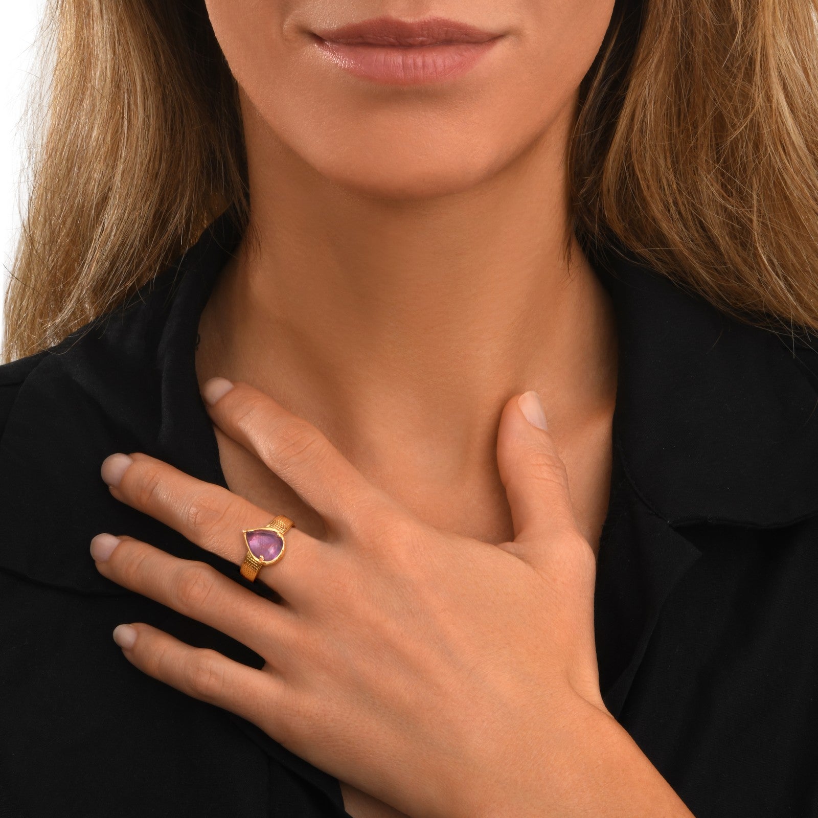 Bysance Adjustable Ring In Gold-Tone Metal With Teardrop Amethyst – Violet