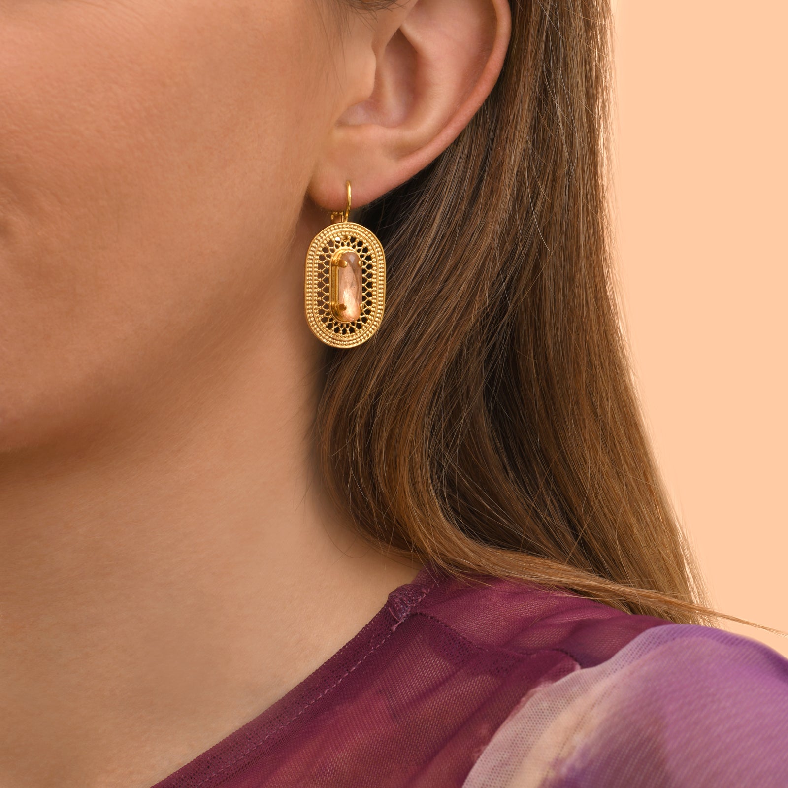 This pair of sleeper earrings will add radiance and light to all your outfits. The 18-carat gold-plated metal reveals all the majesty of this timelessly elegant collection of filigree jewellery. Set with Prestige crystal cut like a precious stone, these Noor sleeper earrings will ensure you don't pass by unnoticed.