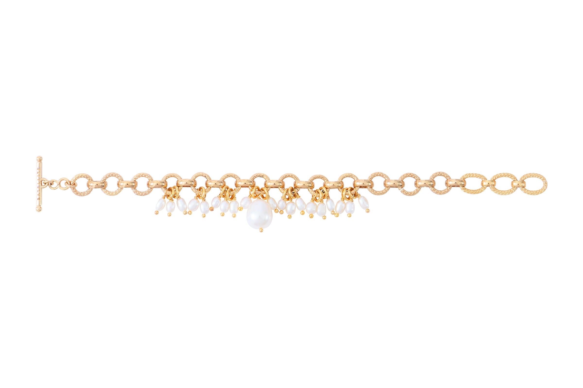 Adorn you wrist with elegance and femininity with this beautiful, highly sophisticated piece of jewellery. Made up of links of fine gold-plated metal, this feminine bracelet is showcased by the radiance of real freshwater pearls. For smart appeal at an evening event, team this bracelet up with a pair of Annella earrings.