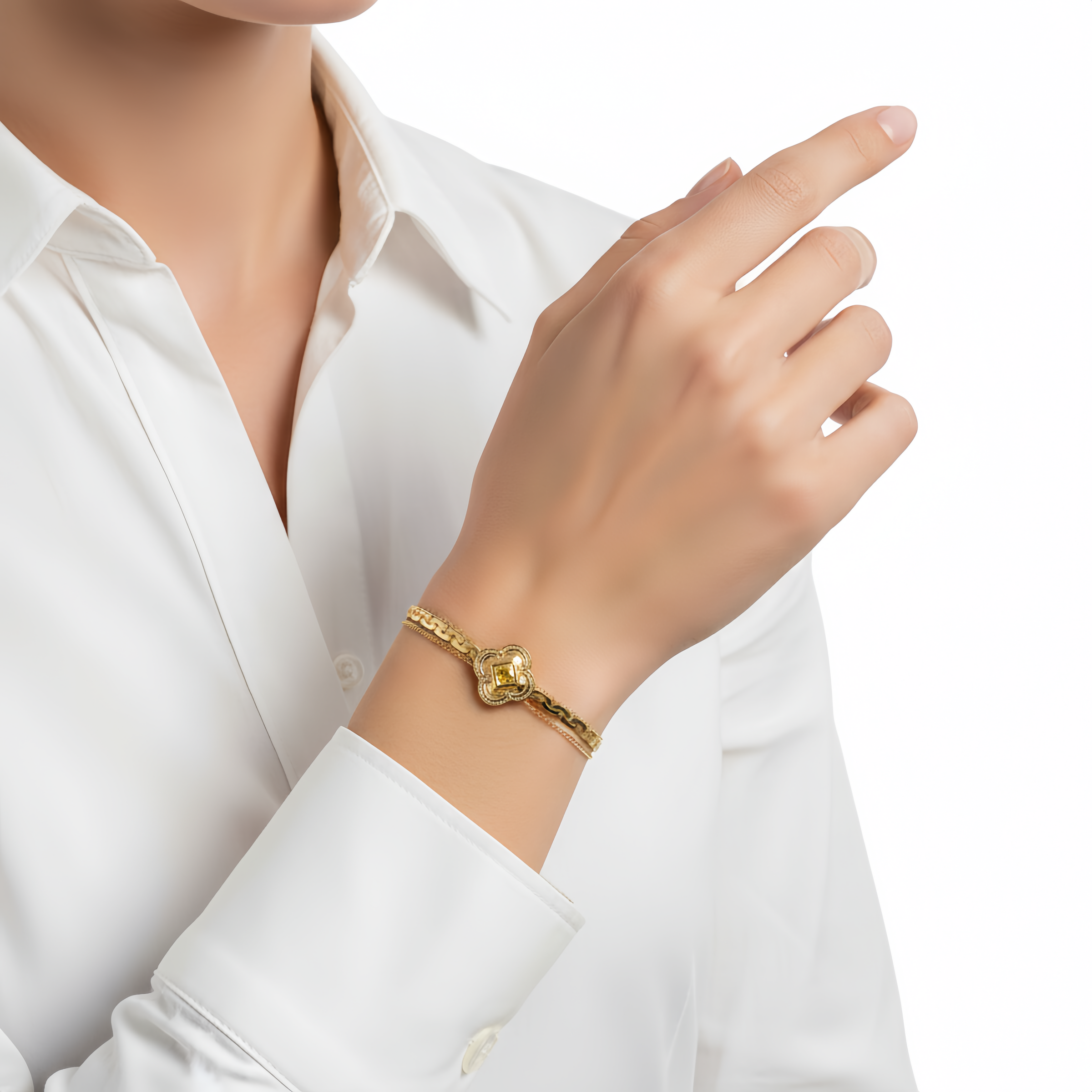 2-row chain bracelet in 18 carat gold-plated metal braided with a fine silver-plated chain and a white crystal.